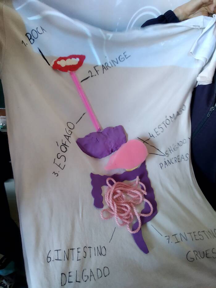 Tras ver en clase los aparatos que intervienen en la nutrición, los alumnos 4º de PRIMARIA hemos puesto en marcha nuestra creatividad y utilizando diferentes materiales, los hemos representado en una camiseta.